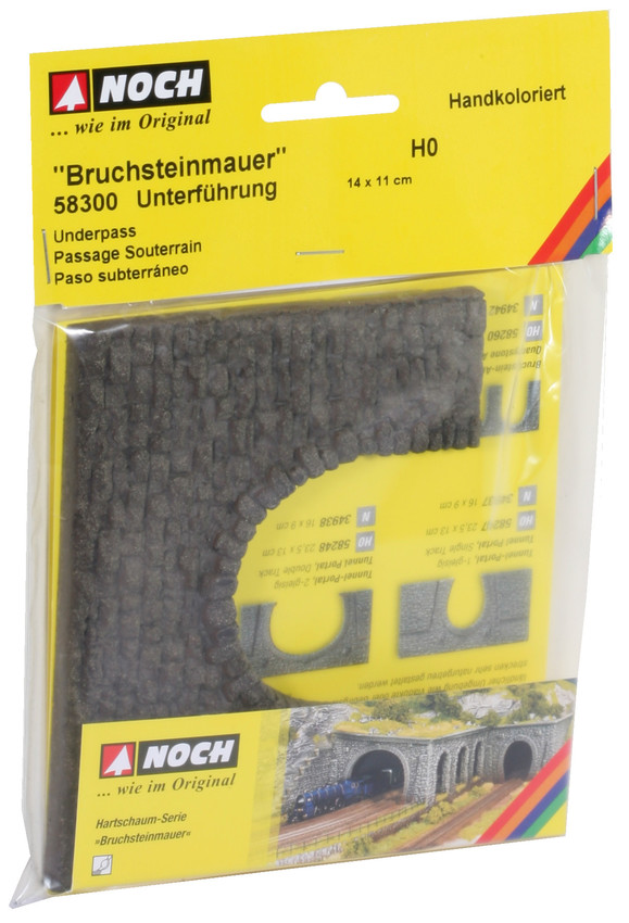Auch Strassen und Wege führen durch Tunnel und Unterführungen. Die Unterführung eignet sich daher ideal, um Strassen- und Fahrradunterführungen auf der Modelleisenbahn zu erbauen. Die Unterführung in der Spurweite H0 (Massstab 1:87) ist kinderleicht in der Verarbeitung. Das Fertigmodell aus Struktur-Hartschaum kann einfach aus der Verpackung entnommen, ggf. noch mit Patina-Pulver gealtert und in die Landschaft eingebaut werden. So einfach und schnell war das Erbauen einer Strassenunterführung noch nie!
