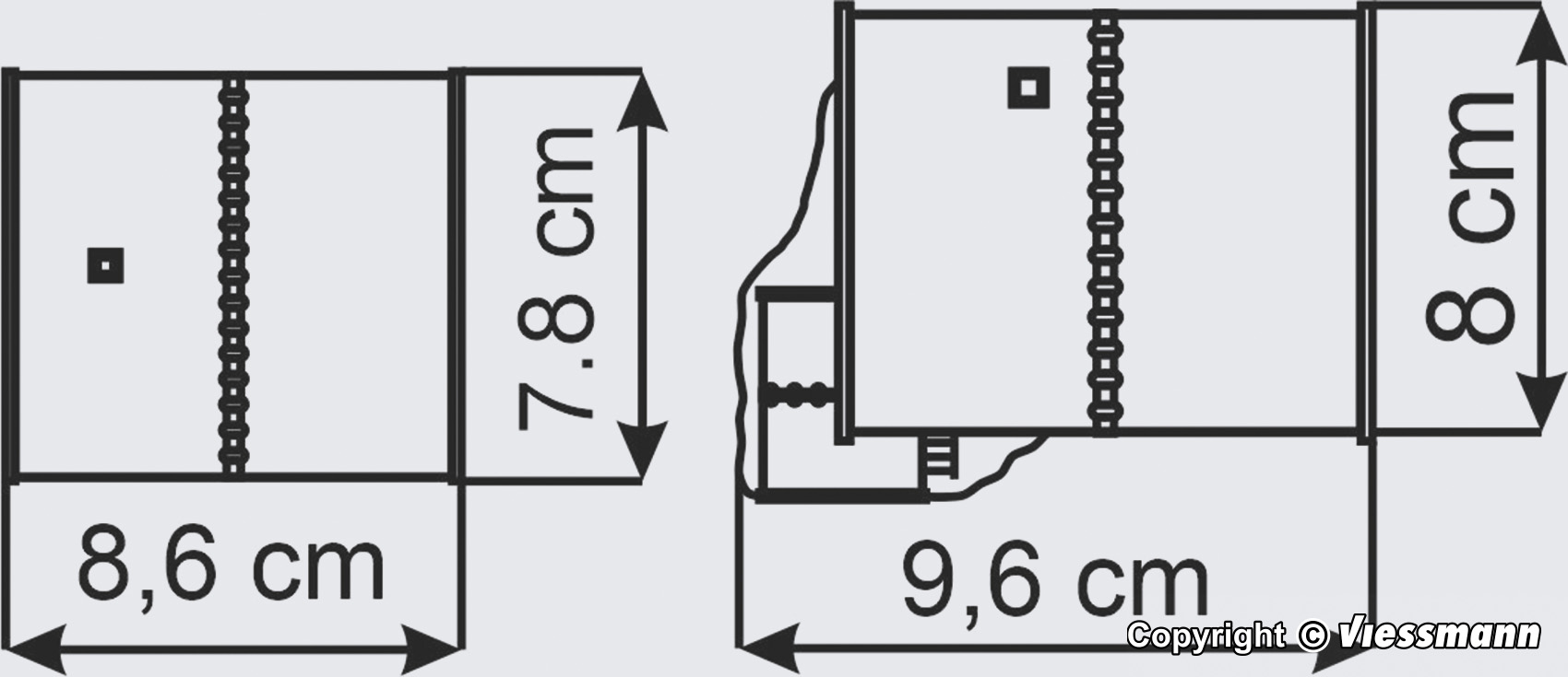 Maße: L 8,6 x B 7,8 x H 5,5 cm, L 9,5 x B 8 x H 5 cm.
