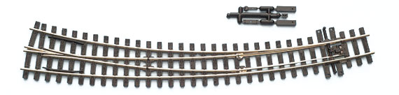 10° Bogenweiche rechts, Außenradius: 609 mm, Innenradius: 457 mm, Herzstückwinkel: 10°