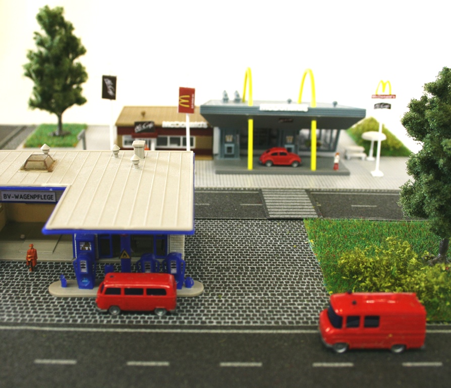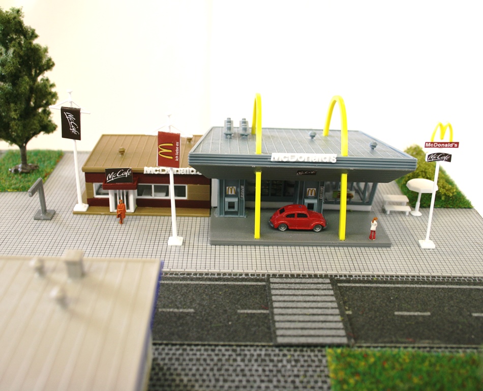 Vollmer Mc Donalds mit Mc Cafe und Tankstelle/Waschanlage - Ferigmodell 30 x 30 cm N