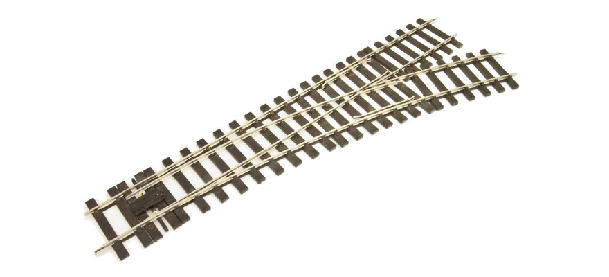 Das ist deutlich steiler als bisher erhältliche Weichen. Es kann wegen der befahrbaren Radien größerer Lokmodelle problematisch sein, solche steilen Weichen auf Hauptstrecken zu verbauen, aber in engen Industriegebieten kann der Einsatz durchaus sinnvoll sein. Die Schwellenanordnung und die Kleineisen entsprechen britischem Vorbild.