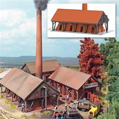 Dieser Bausatz stellt einen Ringofen vom Typ »Hoffmann« aus der Ziegelei Erbs dar. Wie im Original ist der gemauerte Ofen mit den seitlichen Zugängen zum Inneren des Ofens perfekt dargestellt. Der Aufbau ist aus Echtholz gefertigt. Filigrane Details wie Treppe, Regenrinnen und Fallrohre bestehen aus Kunststoff. Der imposante Schornstein dient heute nach Einstellung der Produktion bei dem Vorbild als Behausung für Störche. Bausatz.