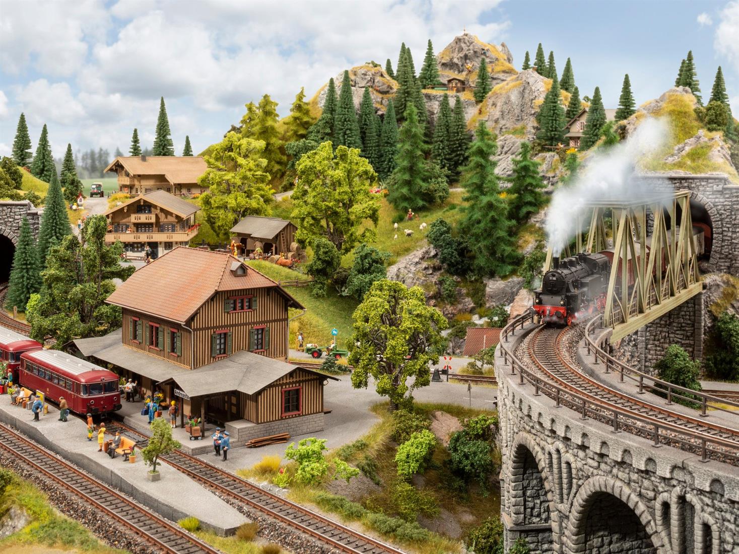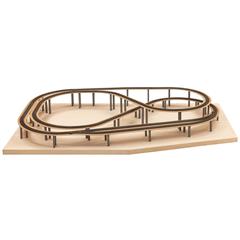 Wie das Vorbild von Andreas Theis, könnte Ihre Anlage aussehen. Oder vielleicht auch ganz anders? Sie haben es in der Hand, denn dank des Easy-Track Bausatzes können Sie die Modell-Landschaft ganz nach Ihren individuellen Vorstellungen gestalten. Die technisch aufwendige Gleisplanung hingegen haben wir Ihnen abgenommen. Alle Teile wie Fahrbahnsegmente, Ständer und Bodenplatten für den Aufbau der unten abgebildeten Trassenführung finden Sie mitsamt eines 1:1 Aufbauplans im Bausatz.