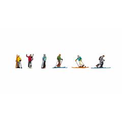 Mit dem neuen Figurenset "Wintersport" können Sie jeden beschneiten Hang auf Ihrer Modellanlage in eine Piste für Tourengeher verwandeln! Das Figurenset beinhaltet 6 Figuren, davon haben 3 ihre Skier bereits ausgezogen, und 3 fahren auf Ihren Skiern den Berg hinunter.
