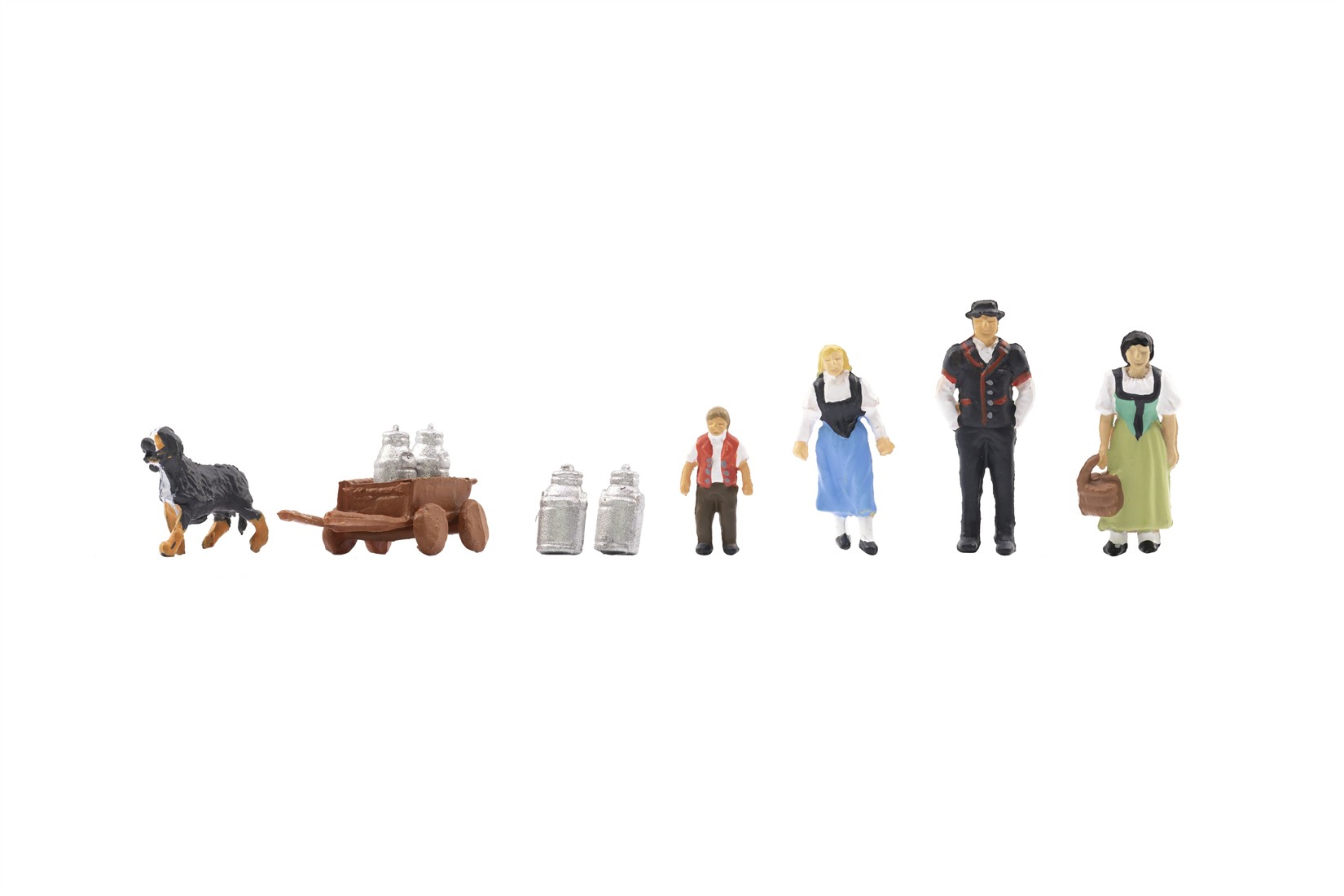 Handbemalte Miniaturfiguren aus Kunststoff zur Dekoration von Spurweite H0 Modellanlagen.