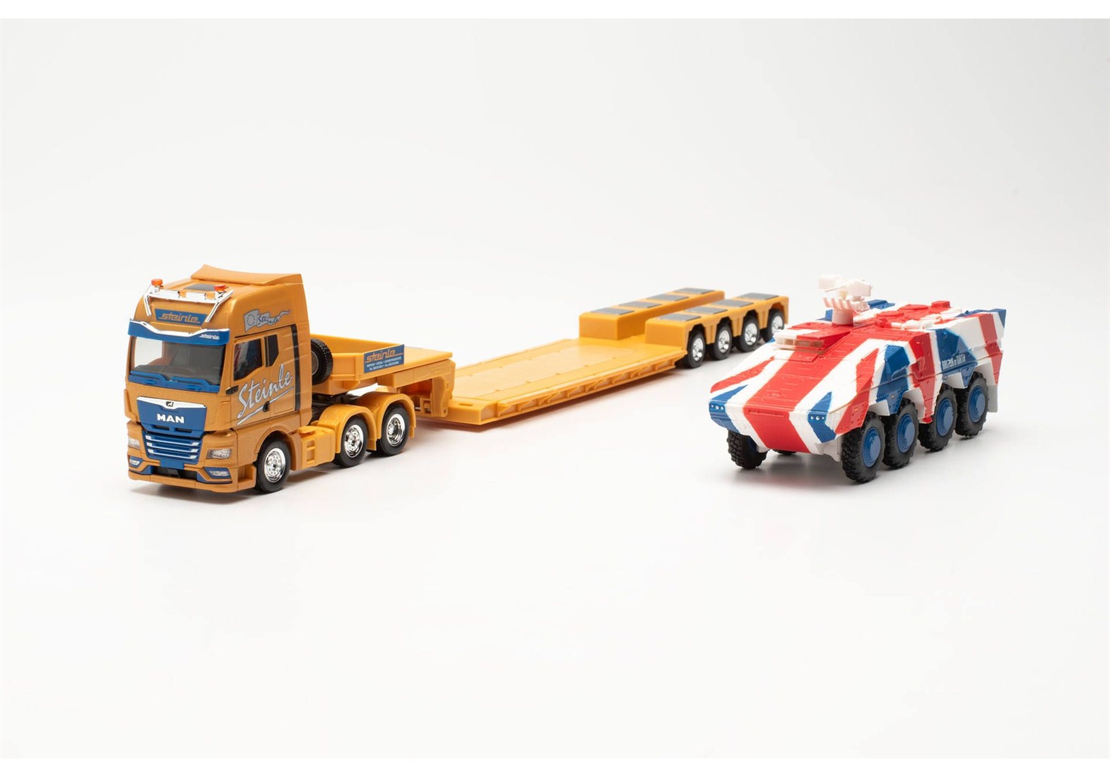 Herpa MAN TGX GX 6x2 Tieflade-Sattelzug mit GTK Boxer England "Spedition Steinle" - Art.Nr. 316439