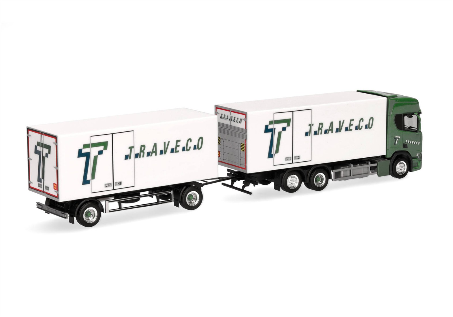 Herpa 317788 CR 20 HD Kühlkoffer-Hängerzug Traveco (CH) - H0 (1:87)