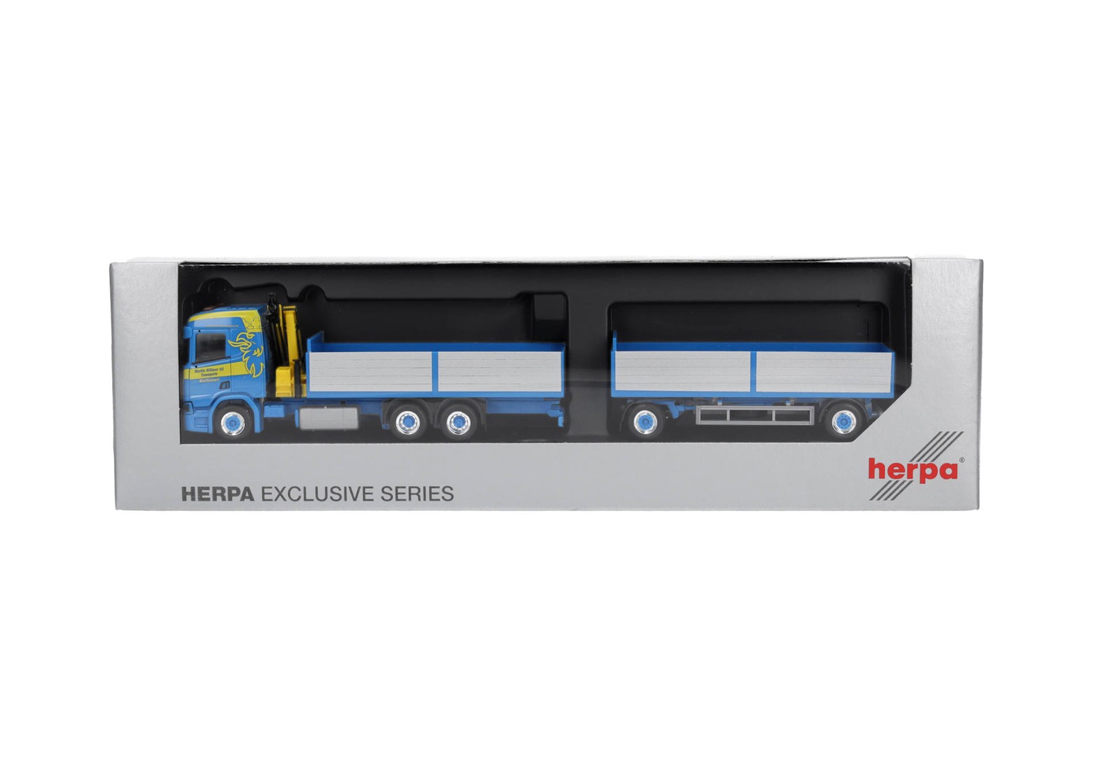 Herpa 926072 Scania CR 20 ND Pritschen-Hängerzug mit Ladekran "Martin Wittwer" - H0 (1:87)
