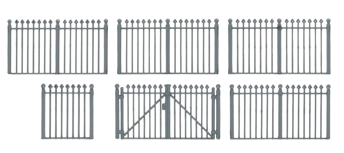 Ein filigraner Eisenzaun mit kunstvoll verzierten Spitzen – in eleganter Gitterform, der perfekt geeignet ist, um die Modelllandschaft mit etwas mehr liebevollem Detail zu versehen. Das Set enthält verschiedene Zaunsegmente sowie ein doppelflügeliges Tor, wodurch sich zahlreiche Aufbauvarianten realisieren lassen.