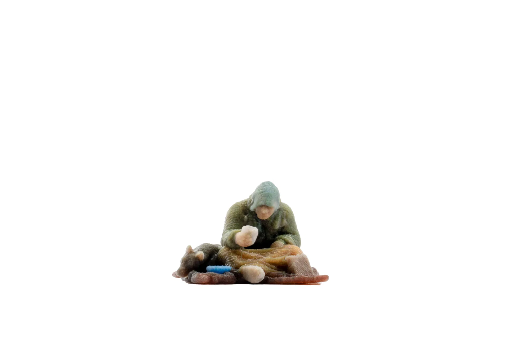 Die 3D gedruckte Figur „Obdachloser“ bringt realistische und berührende Alltagsszenen auf Ihre Modellbahnanlage oder in Ihr Diorama. Die Miniatur zeigt einen sitzenden Mann, eingehüllt in Decken, mit persönlichen Habseligkeiten – ein authentisches Detail, das urbane Szenen, Bahnhofsbereiche oder Straßenecken lebendig und glaubwürdig gestaltet.