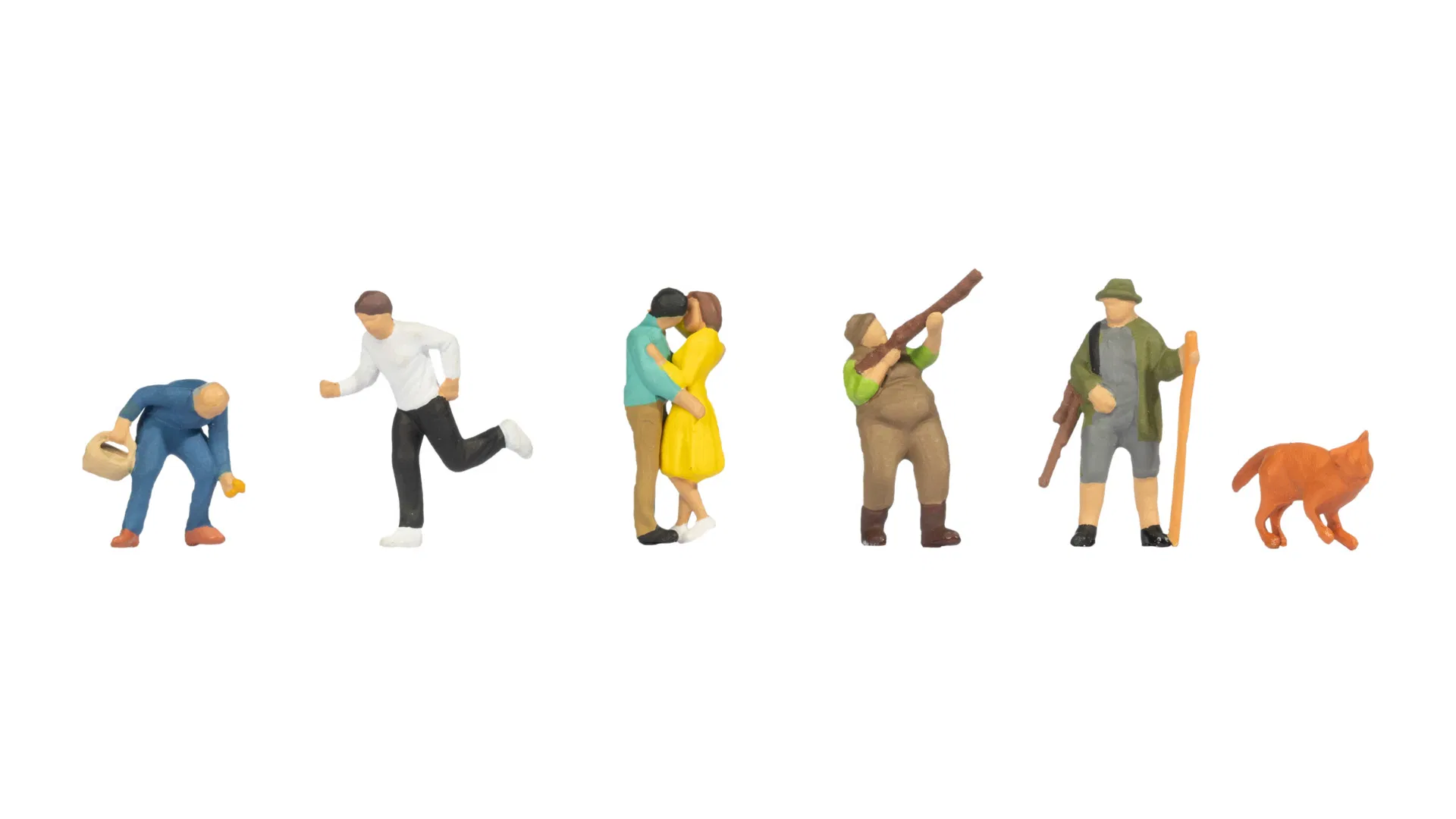 Die Einsatzmöglichkeiten sind vielseitig: Auf der Modelleisenbahn bereichern die Figuren Waldstücke entlang der Strecke, abgelegene Haltepunkte oder Übergänge zwischen Natur und Siedlung. Im Modellbau eignen sie sich ideal für Waldlandschaften, ländliche Szenen oder Naturdioramen. Auch für Dekoration und Makrofotografie bieten die Figuren ruhige, stimmungsvolle Motive. In Kombination mit Tieren oder weiteren Figuren-Themenwelten von NOCH entsteht eine lebendige Miniaturwelt, die Natur und echtes Leben glaubwürdig vereint.