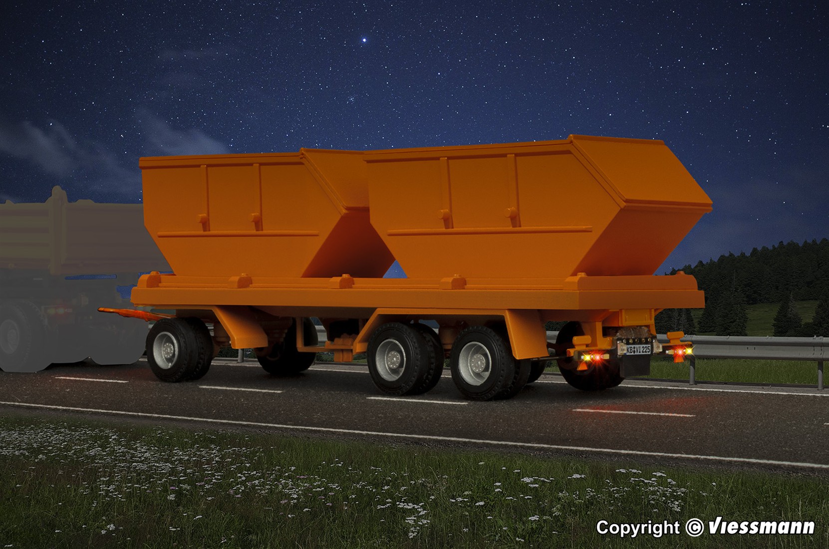 Viessmann 3-achs Containeranhänger, kommunalorange, Funktionsmodell - Art.Nr. 8225