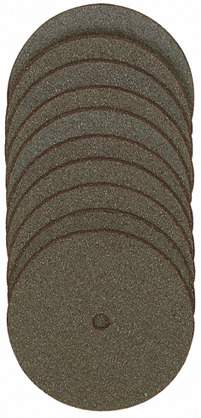 Korund-gebundene Trennscheiben. Gefertigt mit einem Spezialbindemittel. Scheiben Ø 22 mm bzw. 38 mm und 0,7 mm dick. Zum Trennen von legierten und unlegierten Stählen, Edelstählen und NE-Metallen. Aber auch verwendbar zum Schneiden von Holz und Kunststoff. Schaft Ø 2,35.