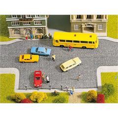 NOCH Straßen-Krepp ist ideal für das FALLER Car-System geeignet: Fixieren Sie zuerst den Spezial-Fahrdraht mit einigen Klebestreifen. Anschließend verlegen Sie den NOCH Straßen-Krepp über den Spezial-Fahrdraht. Die FALLER Car-System-Fahrzeuge drehen auf dem NOCH Straßen-Krepp sicher ihre Runden.