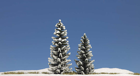 Busch 2 verschneite Fichten 90 und 120 mm hoch - Art.Nr. 6152