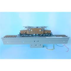 LUX Radreinigungsanlage, Einbauversion in H0m. Mit dieser Version kann gleich mit dem ganzen Zug befahren werden. Sie reinigt auch alle nicht angetriebenen Räder.