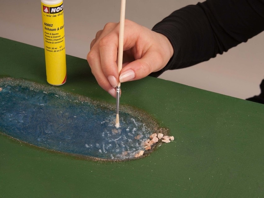 Die Gewässergestaltung gehört zu den anspruchsvollsten Themen beim Modell-Landschaftsbau. Damit Sie möglichst einfach und schnell beste Ergebnisse erzielen, hat NOCH das "Modellwasser" entwickelt! Das NOCH "Modellwasser" ist sicherlich die einfachste Art, einen See, Teich oder kleinen Bach ohne Gefälle zu gestalten.