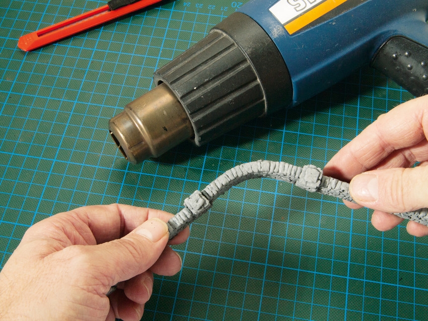 2. Mit Heißluft oder heißem Wasser formen. Dazu: Etwa einen halben Liter Wasser mit Wasserkocher zum Kochen bringen. Gewünschte Stelle etwa 30 -40 Sekunden mit dünnen Strahl übergießen und Mauer sofort in gewünschte Form biegen. Halten bis abgekühlt.