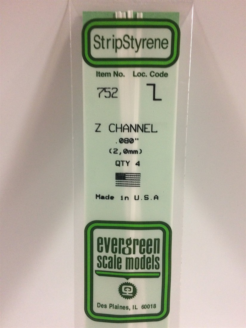 Evergreen 752 Z-Profil, 35 mm lang, Höhe 2,0mm, Dicke 0,40 mm , 4 Stück