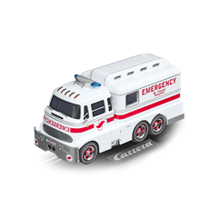 Wenn es auf der Rennstrecke so richtig zur Sache geht und die Carrera Piloten die Boliden unter Vollgas über die Schiene jagen, bleibt der ein oder andere Crash nicht aus. Für diesen Fall steht in der neuen Saison der Carrera Ambulanz Krankenwagen in der Boxengasse bereit. Mit Blaulicht und Sirene ist der schnelle Helfer umgehend am Einsatzort und die Grid Girl Krankenschwester bringt jeden verunglückten Carreraristi sofort wieder in die Spur.