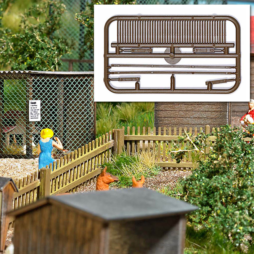 Der Lattenzaun kann an verschiedene Schrägen (Neigung bis 45°) angepasst werden, so dass die Latten auch an einem Berghang senkrecht stehen. Bausatz. Länge: 37 cm.