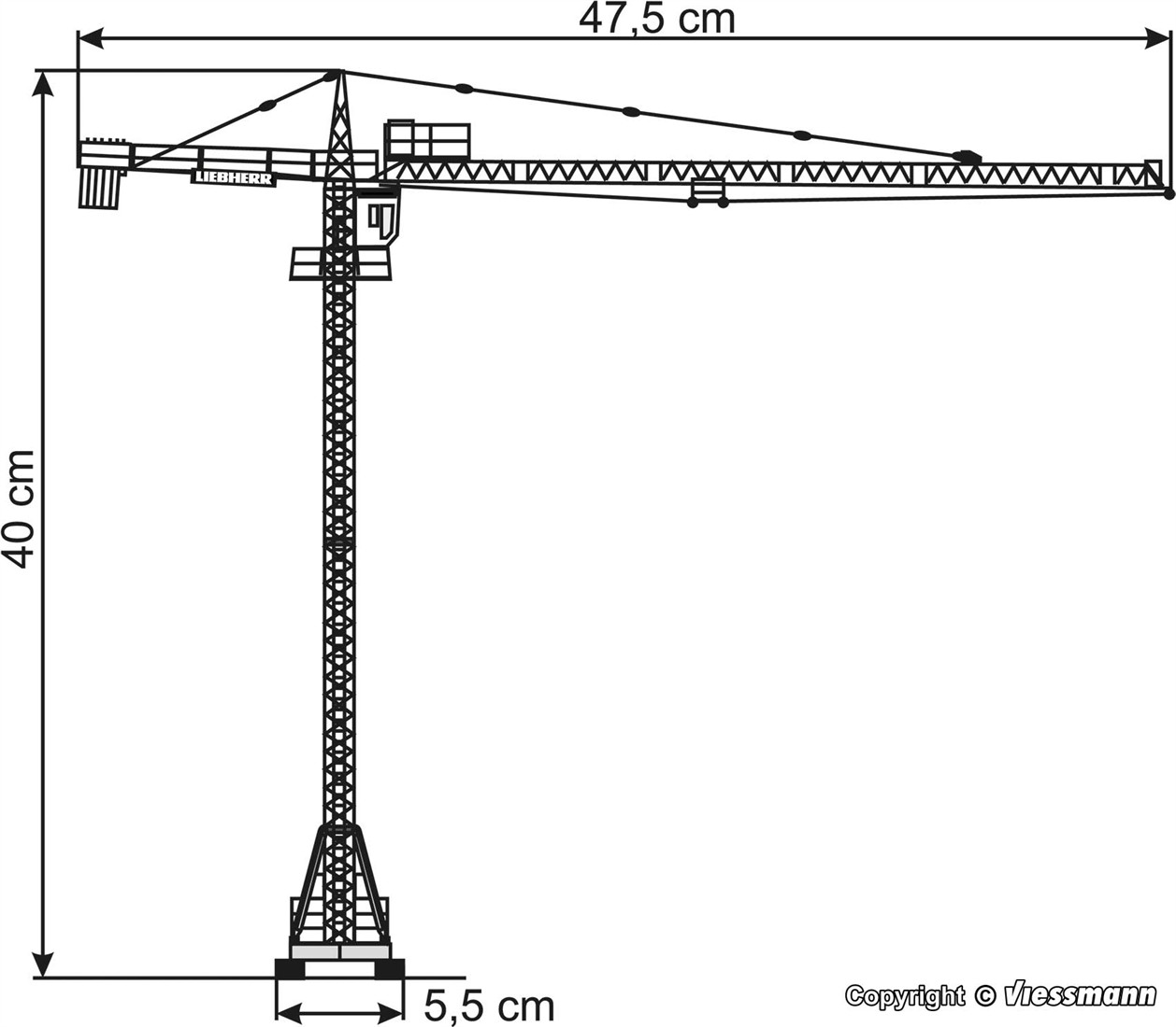 Bausatz. Vorbilddaten: Turmdrehkran LIEBHERR 63 EC-H, max. Hubhöhe 41 m, max. Ausladung 42 m, dabei Hubkraft 1,25 t, max. Hubkraft 5,6 t.