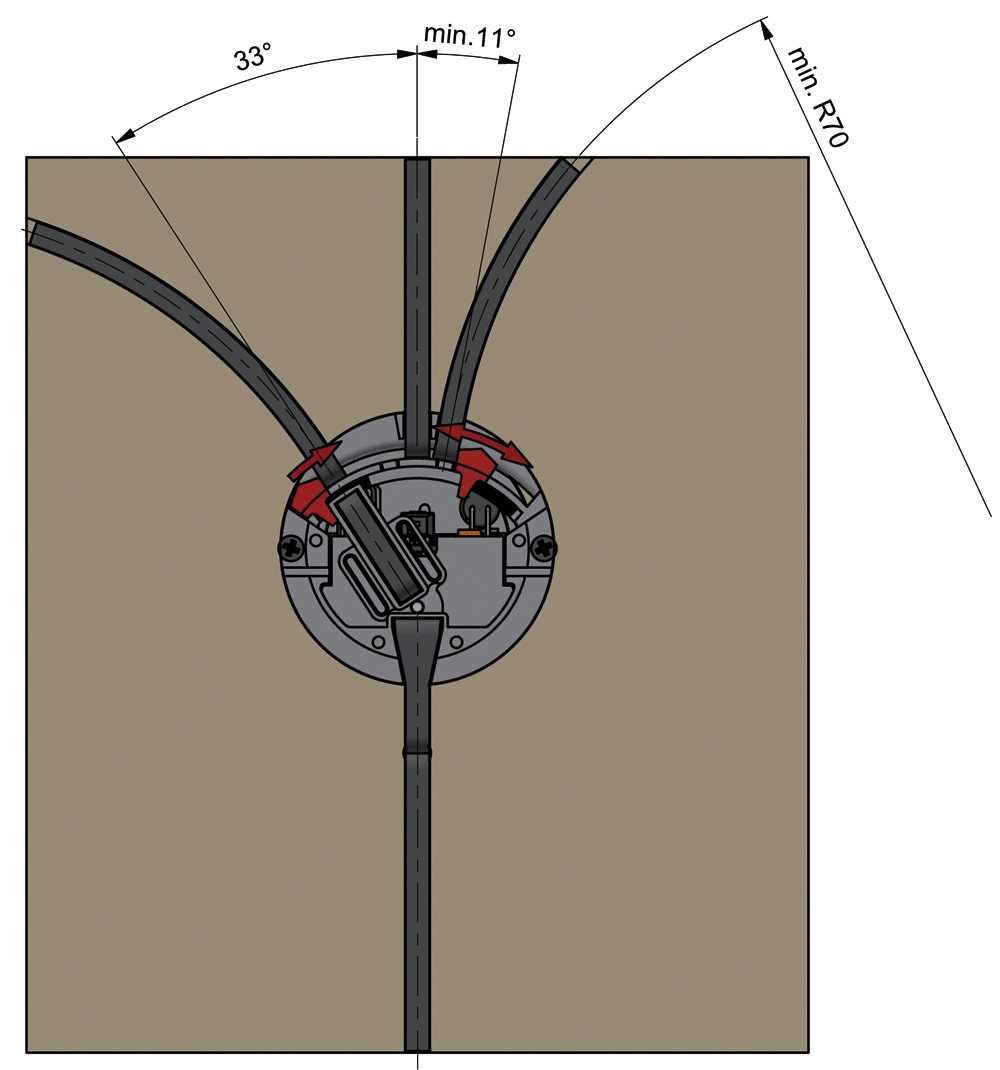 Diese Abzweigung ist mit einem leistungsstarken und geräuscharmen Antrieb mit sicherer Stellbewegung durch einen kraftvollen 10 mm Motor mit Planetengetriebe ausgestattet. Durch Umstecken der variablen Endanschläge kann wahlweise ein Links-, Rechts- oder 3-Wege-Abzweig erzeugt werden. Die Elektronik ist kompakt im Gehäuse untergebracht. Der Abzweig kann manuell, über Taster/Schalter oder den InduktivCharger Art. 8408 angesteuert werden und ist somit auch digital steuerbar. Der Abzweig kann, wie die Fahrzeuge, komfortabel im CarManager konfiguriert werden.