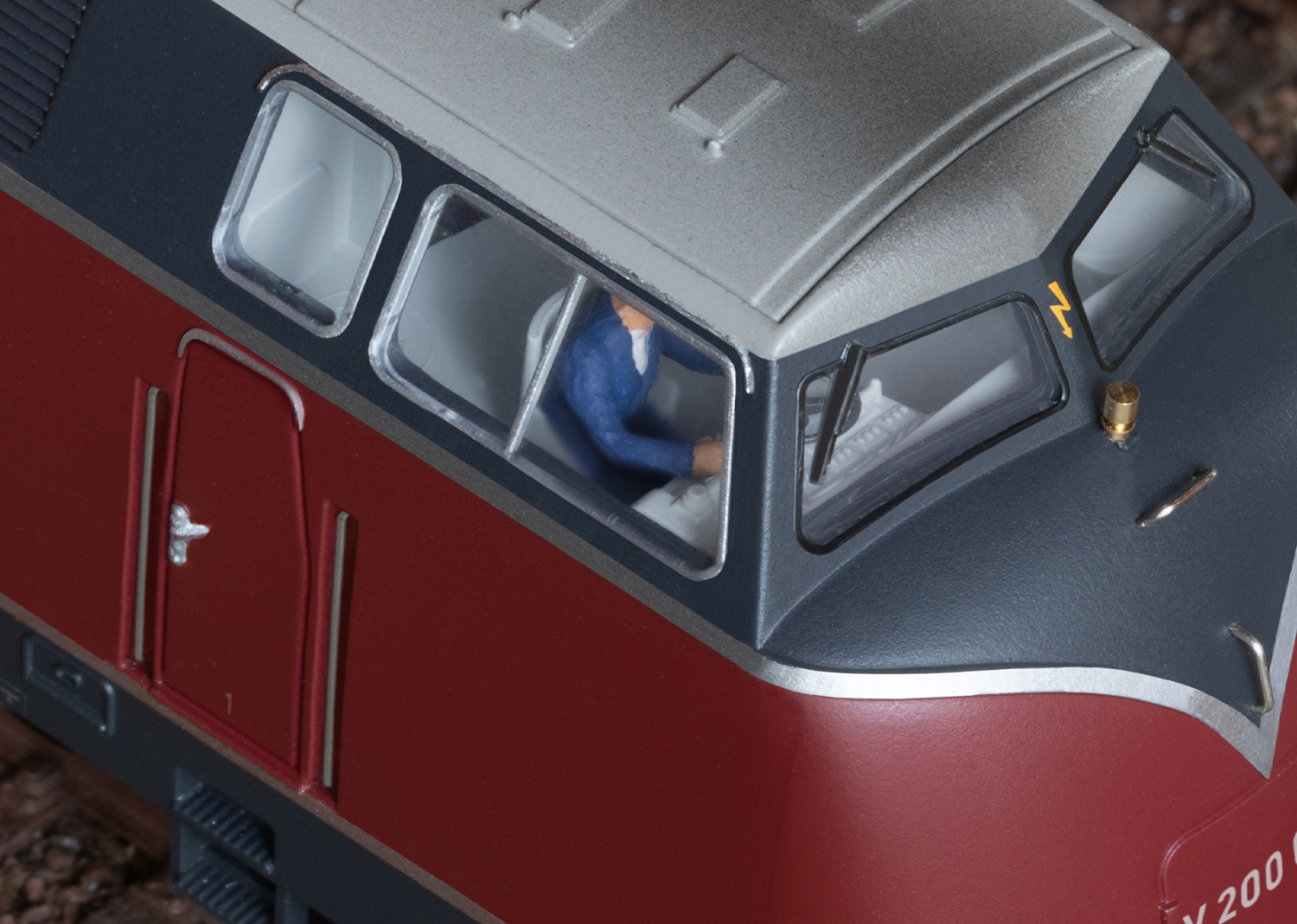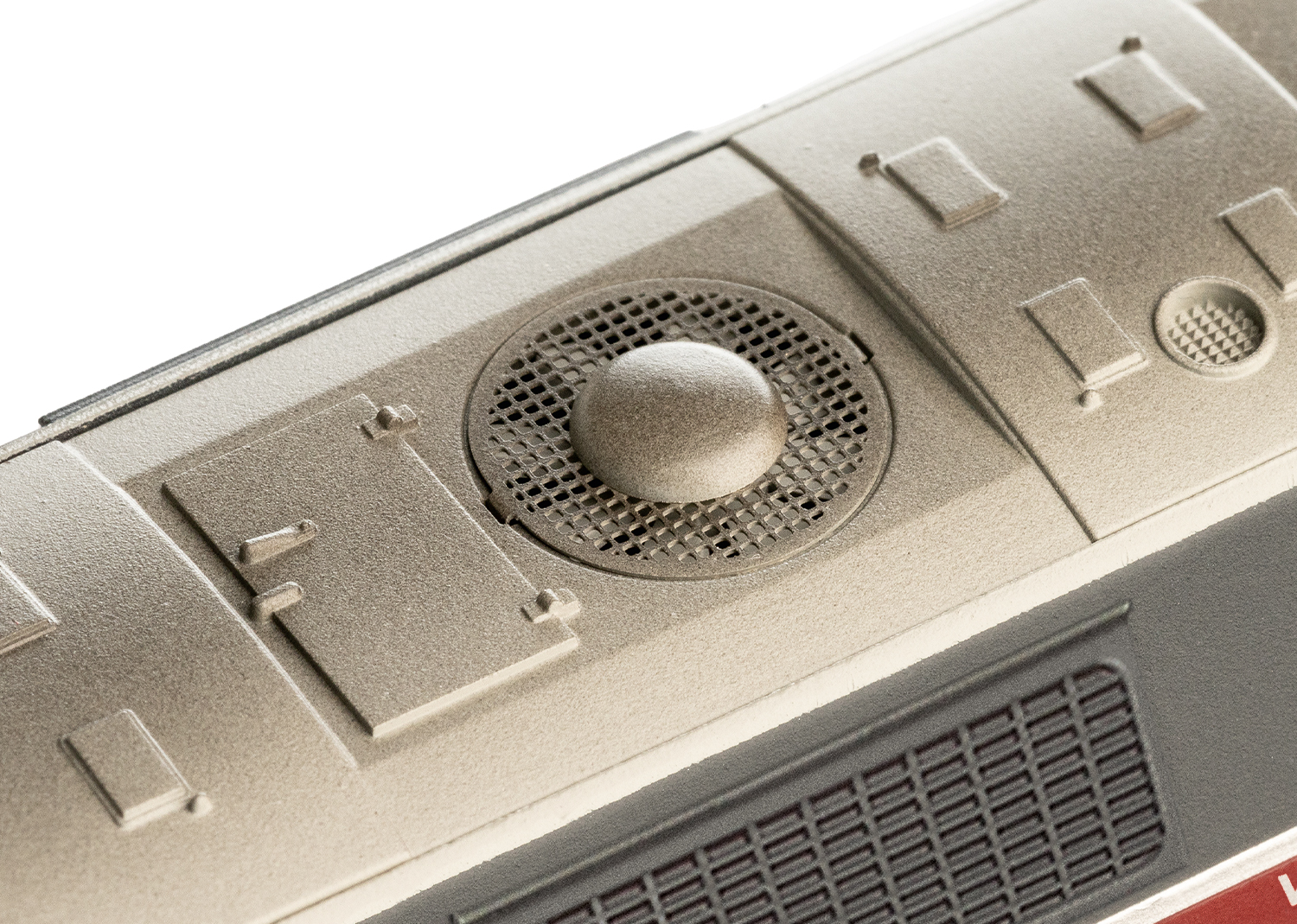 Mit Digital-Decoder und umfangreichen Geräuschfunktionen. Geregelter Hochleistungsantrieb zentral eingebaut. Vier Achsen angetrieben. Haftreifen. Fahrtrichtungsabhängig wechselndes Zweilicht-Spitzensignal und 2 rote Schlusslichter konventionell in Betrieb, digital schaltbar. Spitzensignal an Lokseite 2 und 1 jeweils separat digital abschaltbar. Wenn Spitzensignal an beiden Lokseiten abgeschaltet ist, dann beidseitig Funktion des Doppel-A-Lichts. Führerstandbeleuchtung mit der Fahrtrichtung wechselnd, digital schaltbar. Maschinenraumbeleuchtung digital schaltbar. Beleuchtung mit wartungsfreien warmweißen und roten Leuchtdioden (LED). Zwei bewegliche Lüfterräder mit je einem Motor angetrieben und paarweise separat digital schaltbar. Lüftergitter auf dem Dach aus Metall. Maschinenraumnachbildung neu gestaltet. Seitlich und frontal angesetzte Griffstangen aus Metall. Pufferhöhe nach NEM. Kinematikgeführte Kurzkupplungen. Kupplungen gegen geschlossene Frontschürzen austauschbar. Ansteckbare Hauptluftleitungen, Heizleitungen Kupplungsimitationen und geschlossene Frontschürze liegen bei. Länge über Puffer ca. 21,3 cm.