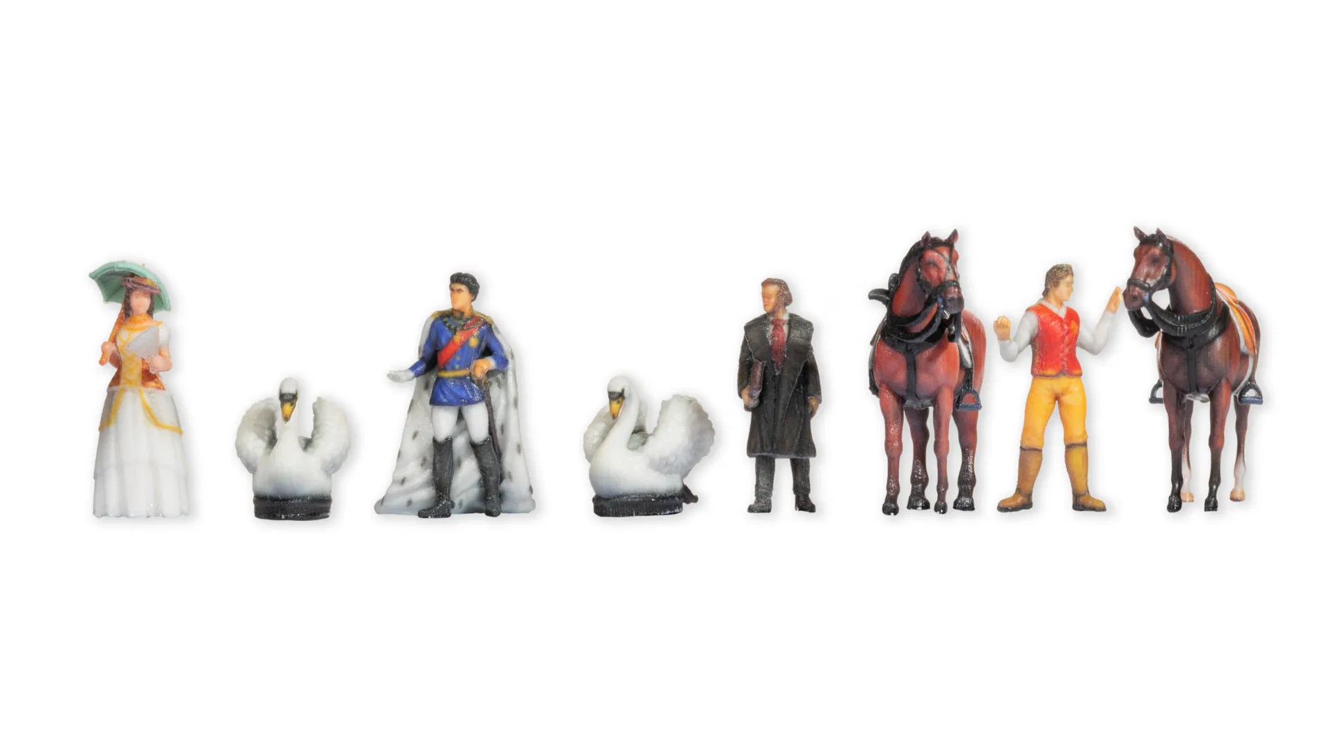 Teil des Lieferumfangs ist das exklusive, achtteilige Figuren-Set, bestehend aus den Figuren König Ludwig II. von Bayern, Kaiserin Elisabeth „Sisi“, Richard Wagner, zwei Pferden, einem Burschen, zwei Schwan-Statuen.