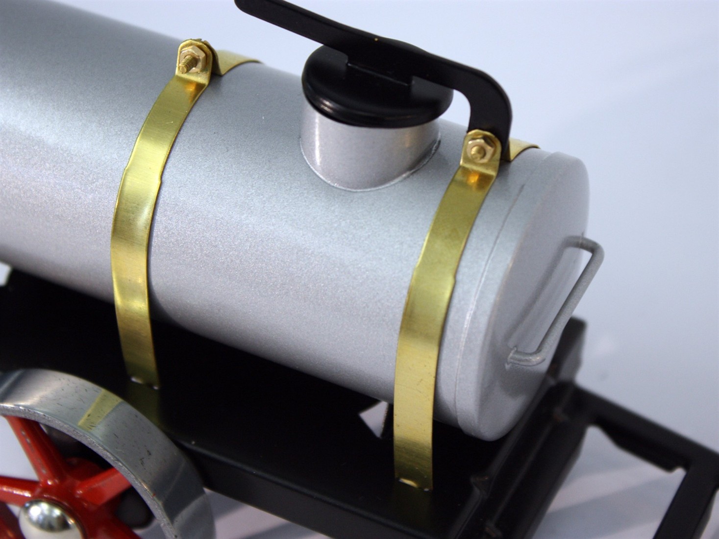 Mit dem Wilesco Sprengwagen Wagon erweitern Sie Ihre mobile Dampfmaschine um ein praktisches Zubehör, das Ihnen viele Vorteile bietet. Der Wasserbehälter aus Messing ist silberfarbig lackiert und verfügt über einen Wasserablasshahn. So können Sie das Wasser schnell und einfach entleeren. Die Speichenräder aus Zink-Druckguss sind poliert und sorgen für eine hohe Widerstandsfähigkeit und Langlebigkeit. Die Einhängekupplung ermöglicht eine einfache Befestigung an Ihrer mobilen Dampfmaschine.