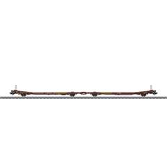 Beide Flachwagenhälften aus Metall. Viele separat angesetzte Details wie Bremsleitungen, Luftbehälter, Überfahrbleche, Tritte und Bremsgestänge. Mit Handrad für Feststellbremse. Pufferhöhe nach NEM. Kinematikgeführte, starre Schraubenkupplung zwischen den Wagenhälften. Haltekeile für die Wagenoberseite, Haltekeile für den Wagenboden und Bremsschläuche liegen als separat ansteckbare Teile bei. Länge über Puffer 32,4 cm. Gleichstromradsatz E414237.