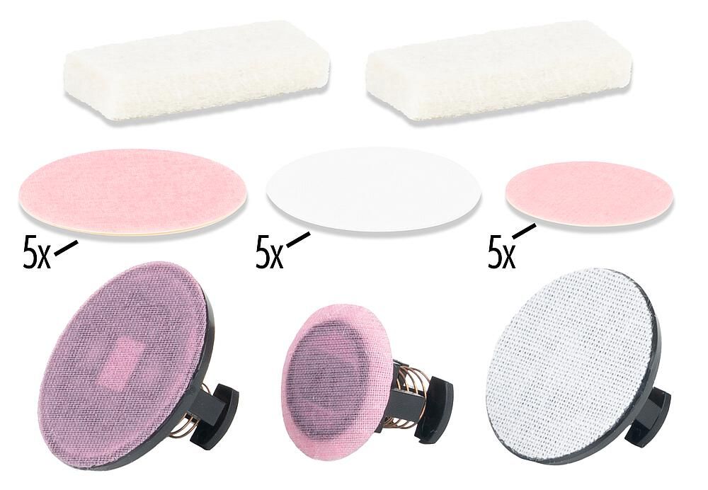 Ersatzteil-Set für den Schienenreinigungswagen in H0. Enthält zwei Filzschwämme, zwei große Reinigungsköpfe, einen kleinen Reinigungskopf sowie jeweils 5 Schleifscheiben groß und klein und 5 Reinigungstücher.