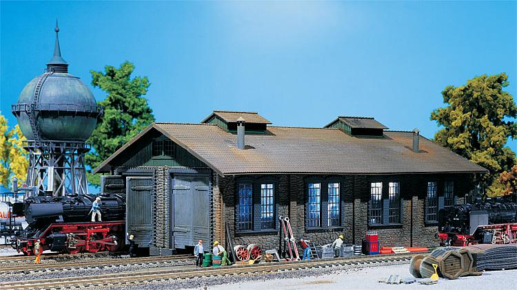 in Ziegelbauweise, mit 2 Unterständen für Loks bis zu 270 mm LÜP.