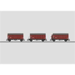 Modell: Die Wagen-Bauarten sind im attraktiven Display je 10 Mal mit kurzem Fahrgestell, je 5 Mal mit langem Fahrgestell und Bremserbühne und je 5 Mal mit langem Fahrgestell und Bremserhaus enthalten. Alle Wagen mit unterschiedlichen Betriebsnummern. Jeder Wagen in gekennzeichnetem Karton einzeln verpackt. Länge über Puffer je Wagen 10,4 cm bzw. 11,3 cm. Gleichstromradsatz je Wagen 2 x 700580.