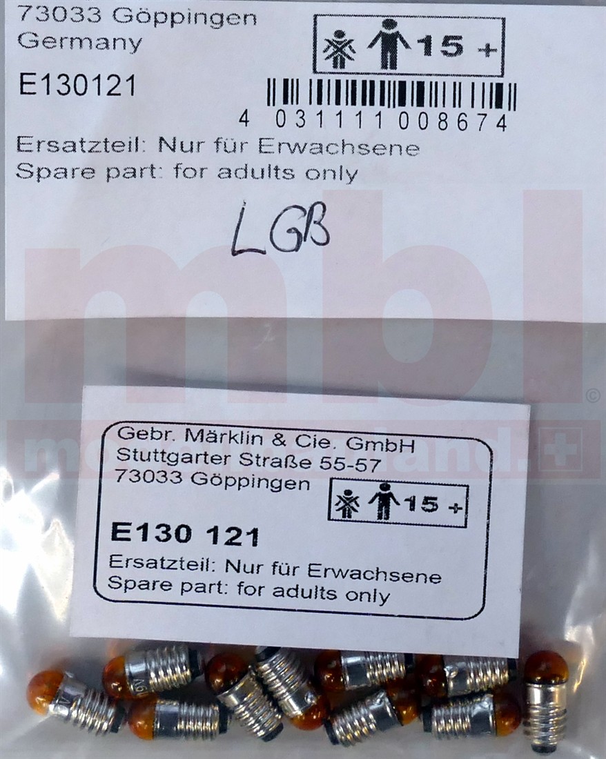 LGB E130121 Glühlampe gelb 18V, E5,5 Gewinde, 10 Stück