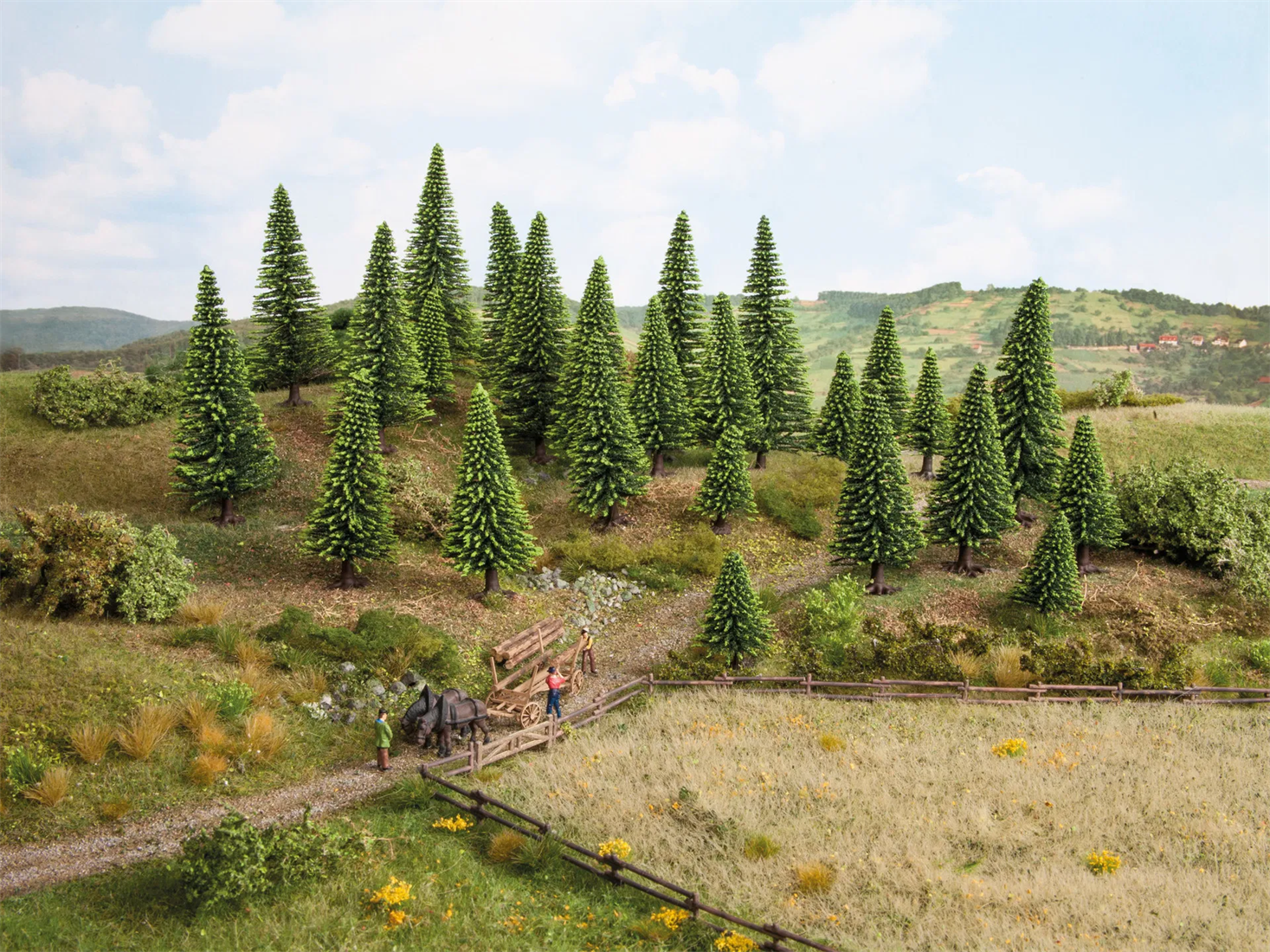 Die "Modellfichten" eignen sich ideal, um hochwertige Landschaftsszenen in einer Modelllandschaft realgetreu nachzugestalten. Wälder gibt es in der realen Natur sehr viele und auch auf einer Modelllandschaft dürfen diese nicht fehlen. Ob Tannen, Laubbäume, Birken, Fichten, Lärchen oder mediterrane Bäume - die unterschiedlichsten Baumarten lassen eine Landschaftsszene noch wirklichkeitsgetreuer und idyllischer wirken.