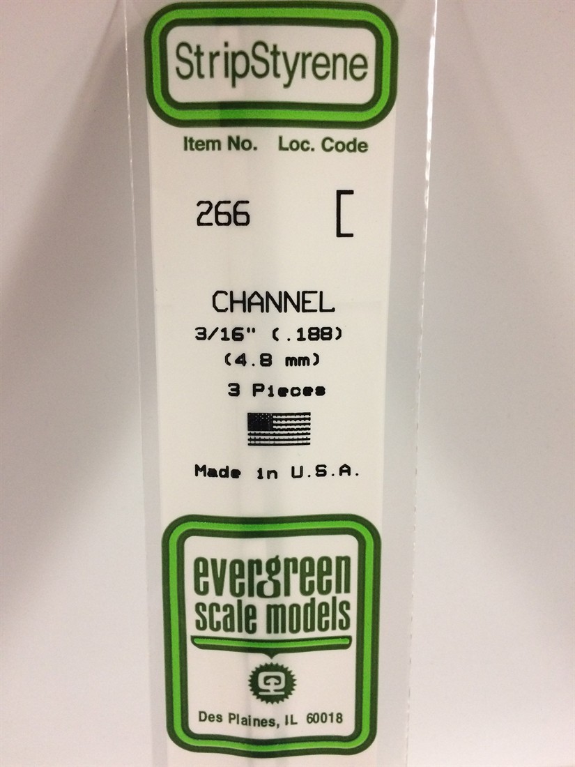 Evergreen 266 U-Profil, 350x4,8x1,6 mm - 3/16, 3 Stück