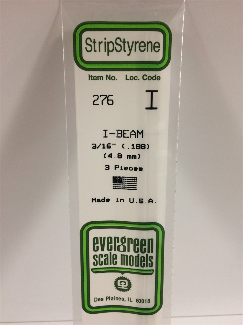 Evergreen I-Profil, 350x4,8X2,4 mm - 3/16, 3 Stück - Art.Nr. 276