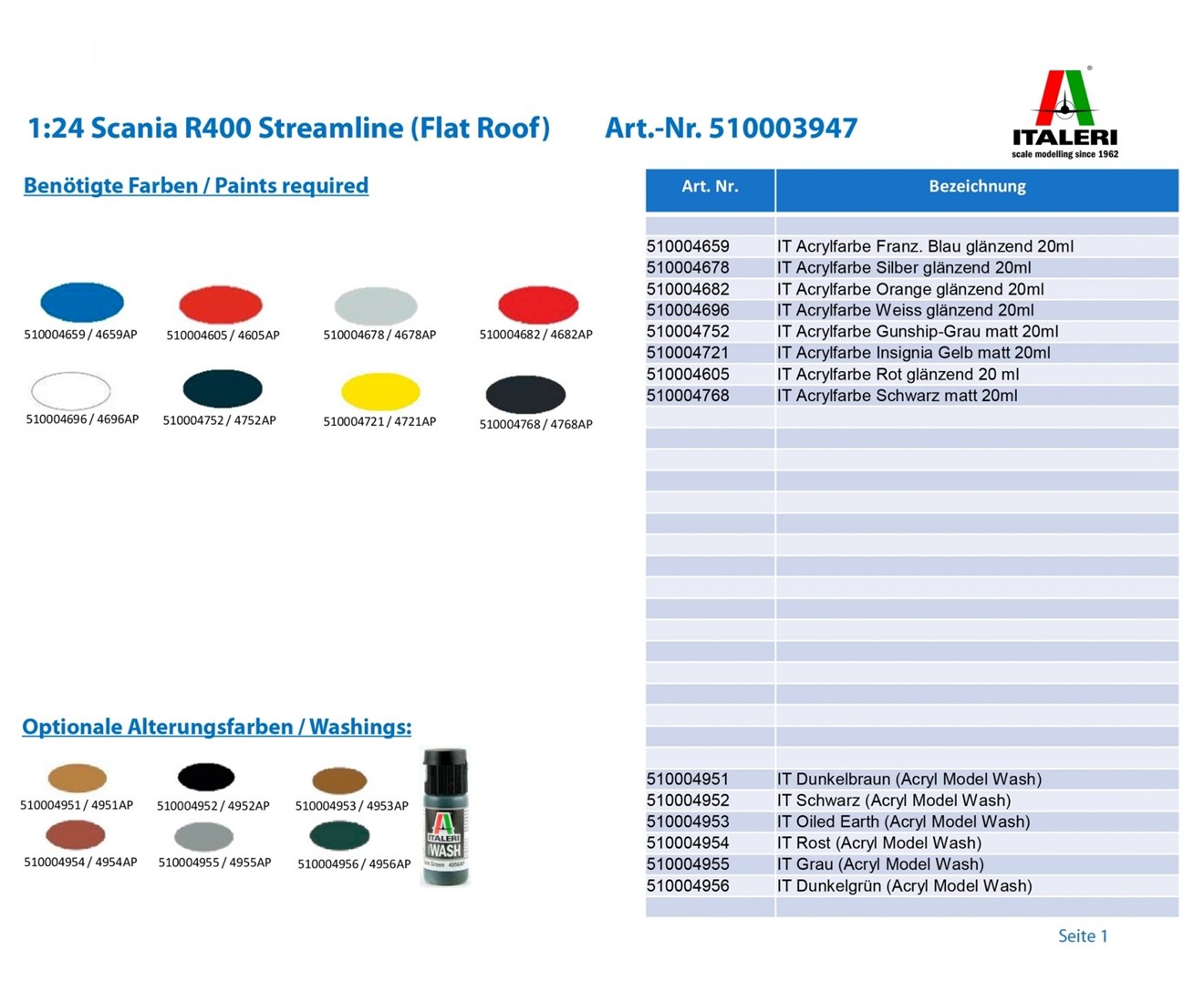 Italeri 3947 Scania R400 Streamline (Flat Roof) - Massstab 1:24