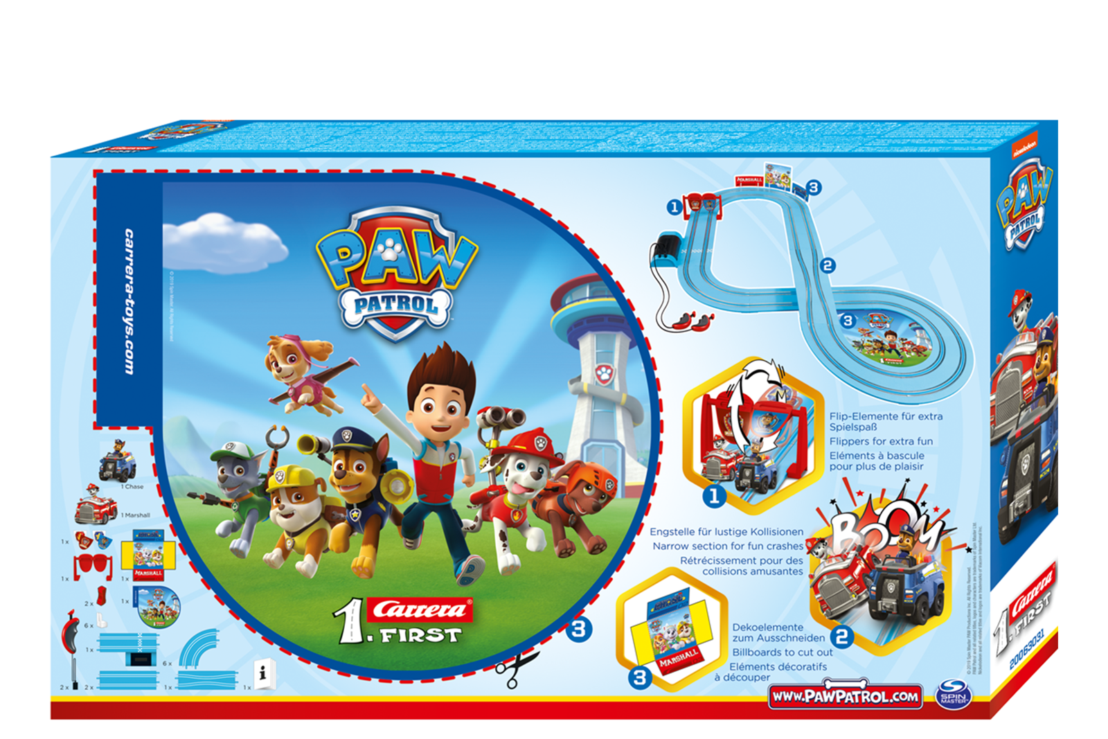 • Carrera FIRST PAW Patrol Set - Track Patrol • 2x Fahrzeuge im Set enthalten: PAW Patrol - Chase und PAW Patrol - Marshall