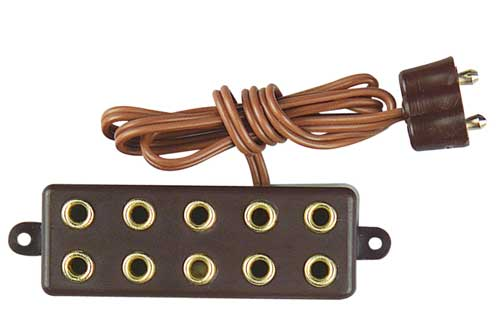 Verteilerleiste mit Stecker für Trafo, 5 Steckplätzen, braun