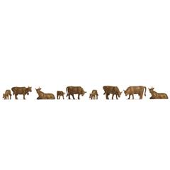 Tiere dürfen auf keiner Modellbahnanlage fehlen. Im NOCH Sortiment finden Sie eine riesige Auswahl für die unterschiedlichsten Situationen. Das Figuren-Set „Kühe, braun“ beinhaltet 7 braune Kühe, in der Spurweite N und die alle handbemalt sind. Unter den Tieren sind 2 Kälber enthalten. Eine Kuh liegt auf dem Boden. Eine weitere hat einen Glocke um den Hals gehängt. Die Kühe genießen die frische Luft auf der Weide. Viele Landwirte verdienen mit Kühen ihren Lebensunterhalt. Die Grasfresser lieben es, auf der weiten Weide zu grasen. Sie können somit Ihrer Kreativität beim Basteln und vor allem bei der Ausgestaltung freien Lauf lassen. Auch die dazugehörigen Landwirte finden Sie in Miniatur.