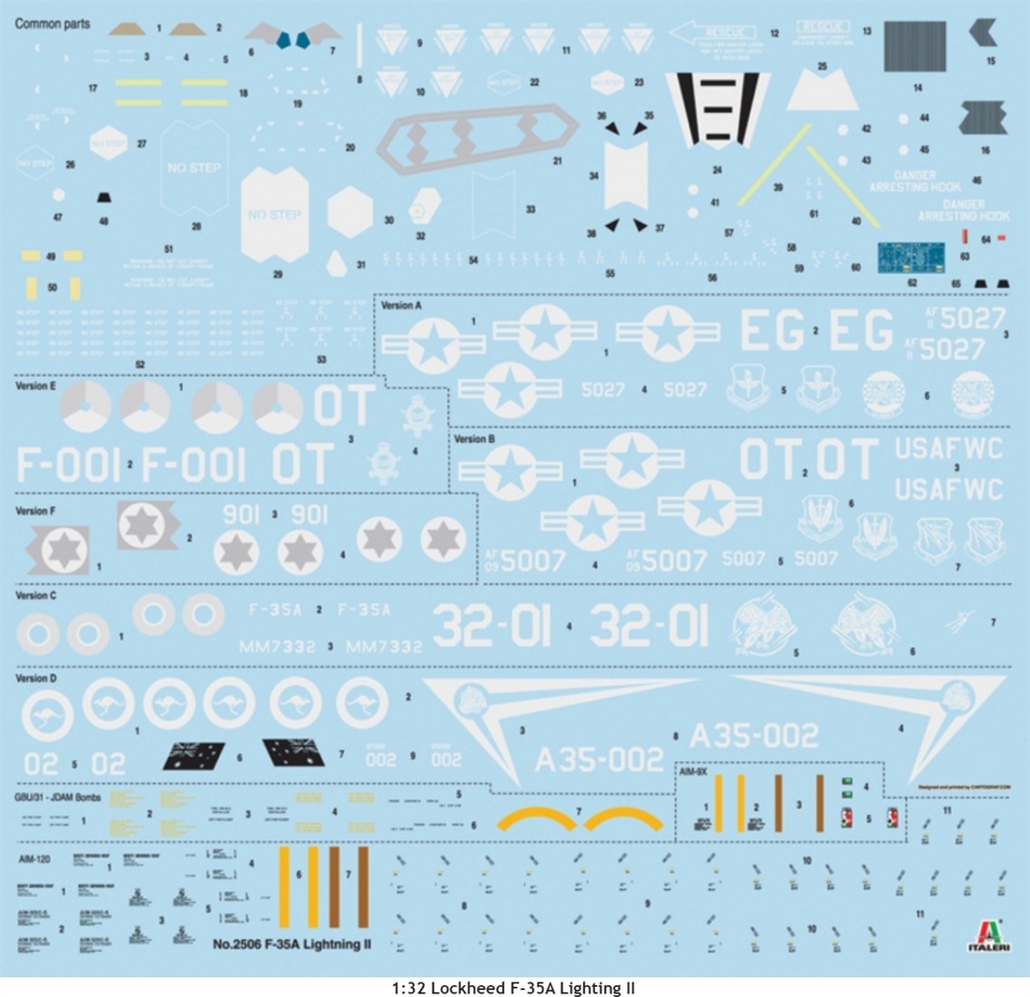 Italeri F-35 A Lightning II Lockheed Martin CTOL Version mit 6 verschienen Decal-Versionen - Art.Nr. 2506