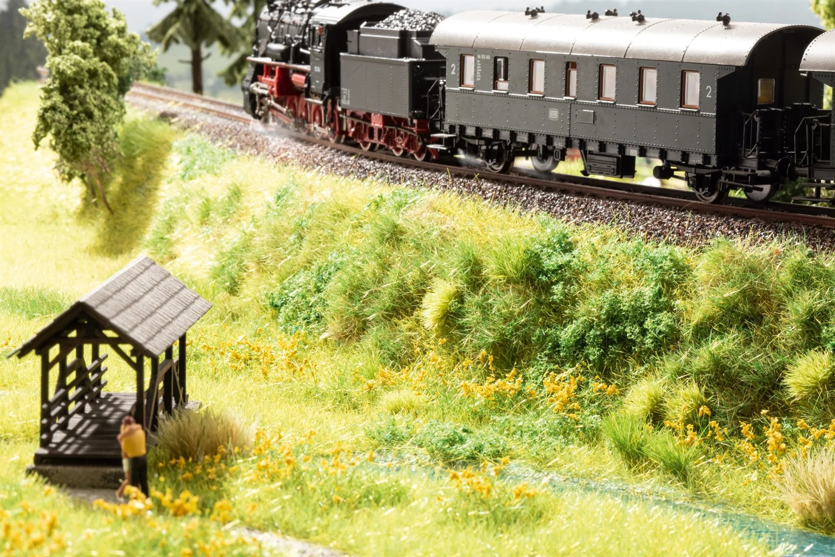 Was ist das Besondere an der Bodendecker-Foliage? Auf einer antihaftend ausgerüsteten Trägerfolie werden verschiedene Gräser und Flockmaterialien elektrostatisch aufgeflockt. Dank des speziellen, dauerflexiblen Klebstoffs, kann die Foliage mühelos von der Trägerfolie angezogen werden. Anschließend wird die Bodendecker-Foliage als Ganzes oder in Teilen in die Modell-Landschaft eingearbeitet. Zum Verkleben empfehlen wir den Landschaftsbaukleber.