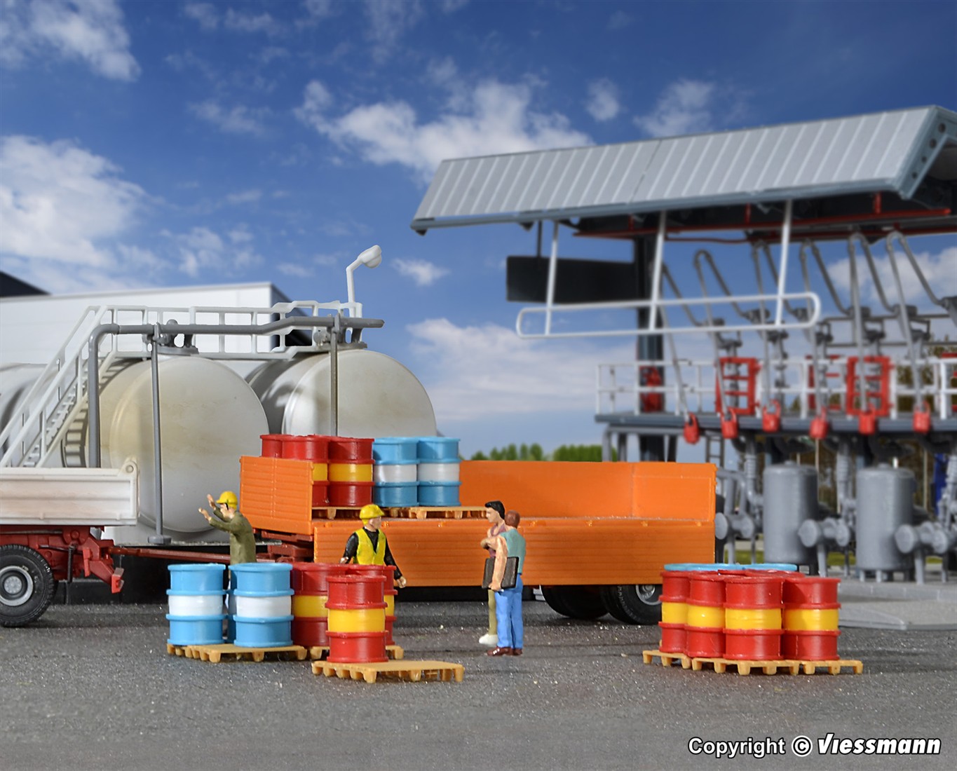 Bausatz. Benzinfässer von Shell, ARAL und Esso.