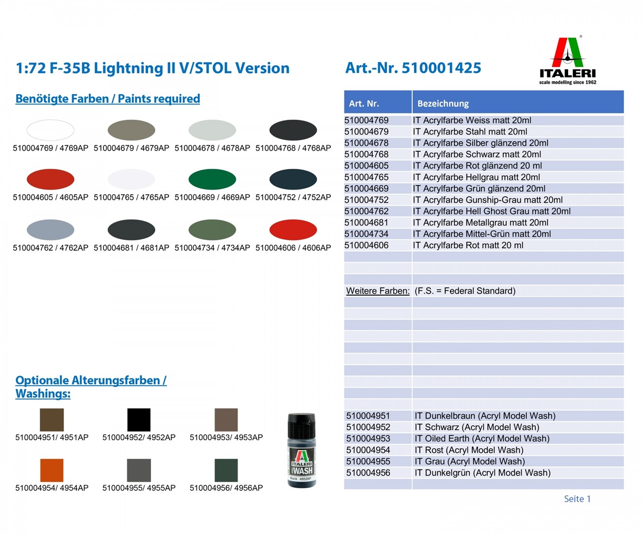 Italeri 1425 F-35 B Lightning II Lockheed Martin - Massstab 1:72