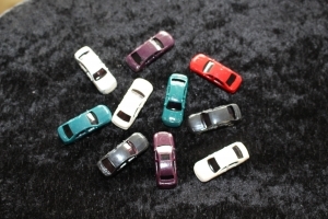 10 Autos, Farben packungstechnisch bedingt unterschiedlich. Zur Modellanlage-Ausschmückung oder zum bestücken von Güterwagen.