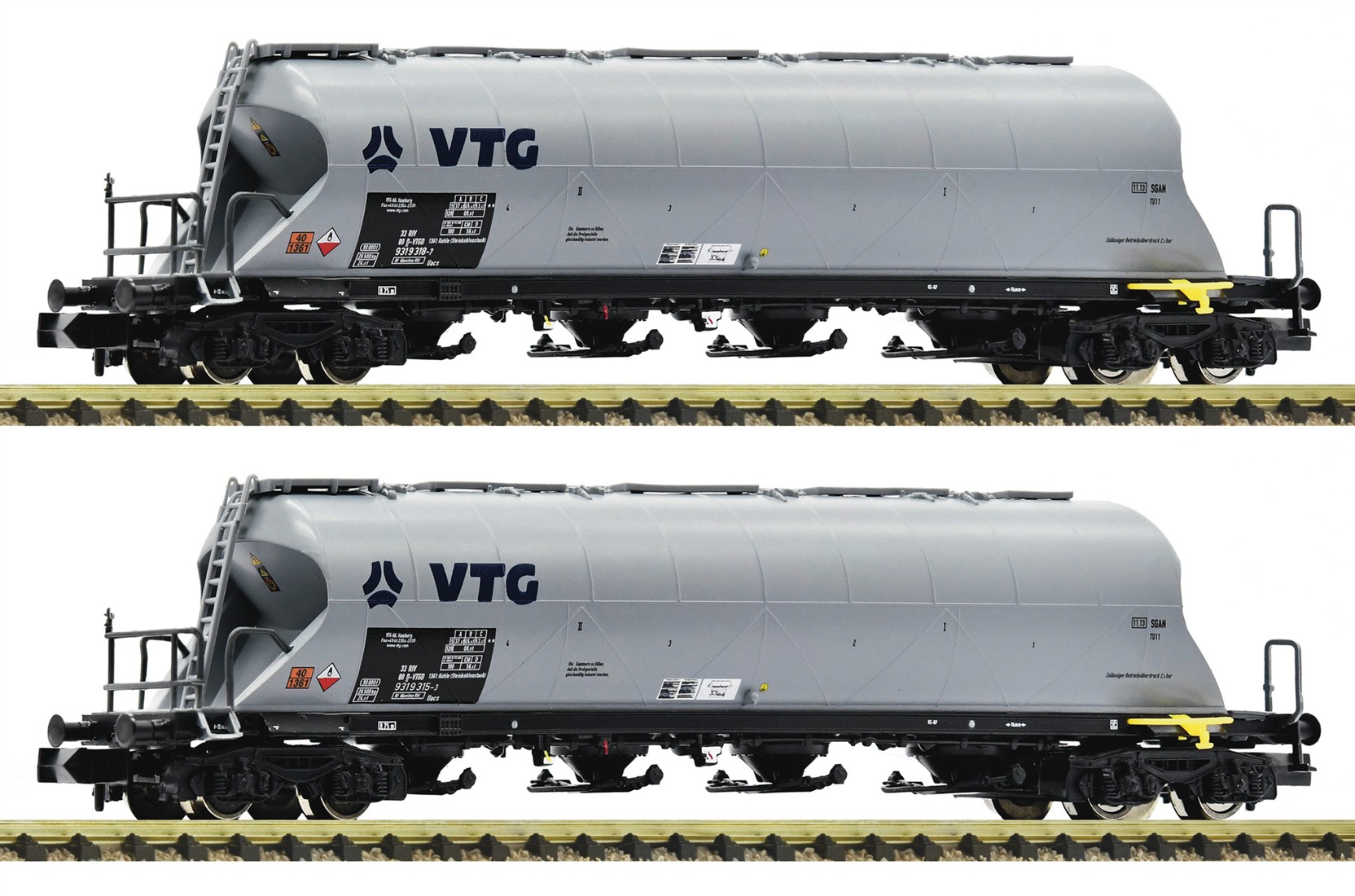 Wagenset mit zwei Staubsilowagen, Gattung Uacs-x, der VTG.