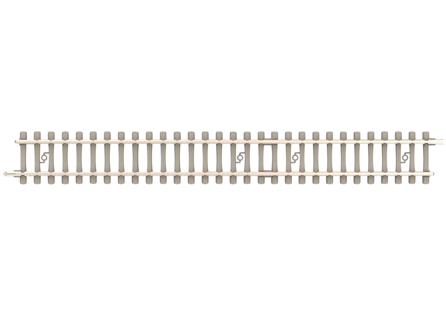 - Die Gleise in grauer Betonschwellenoptik besitzen Vollprofilschienen aus einer rostfreien Speziallegierung