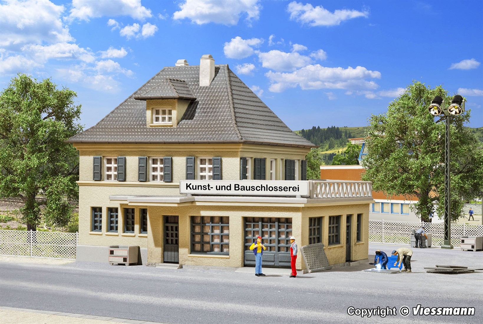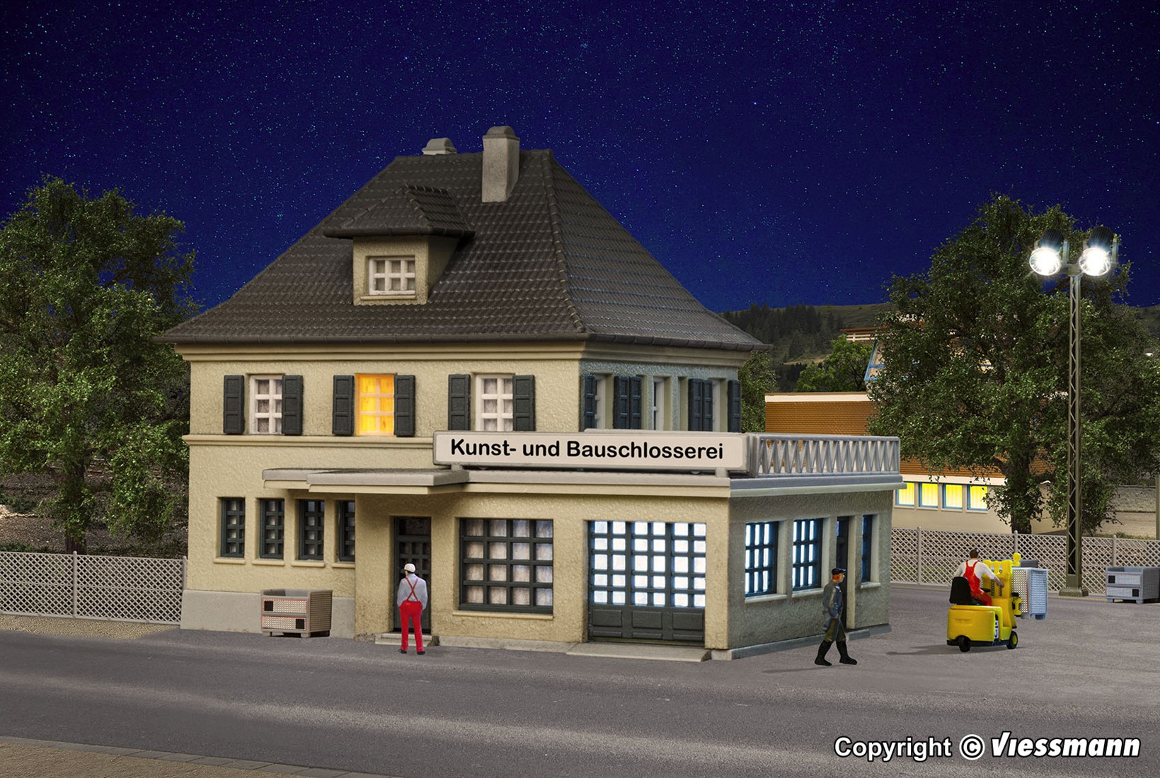 Bausatz. Hier wird mit hochwertigen Materialien geschmiedet und geschweißt. Um ein täuschend echtes flackerndes Licht zu erzeugen, empfehlen wir das elektronische Schweißlicht, Viessmann Art. 5020.